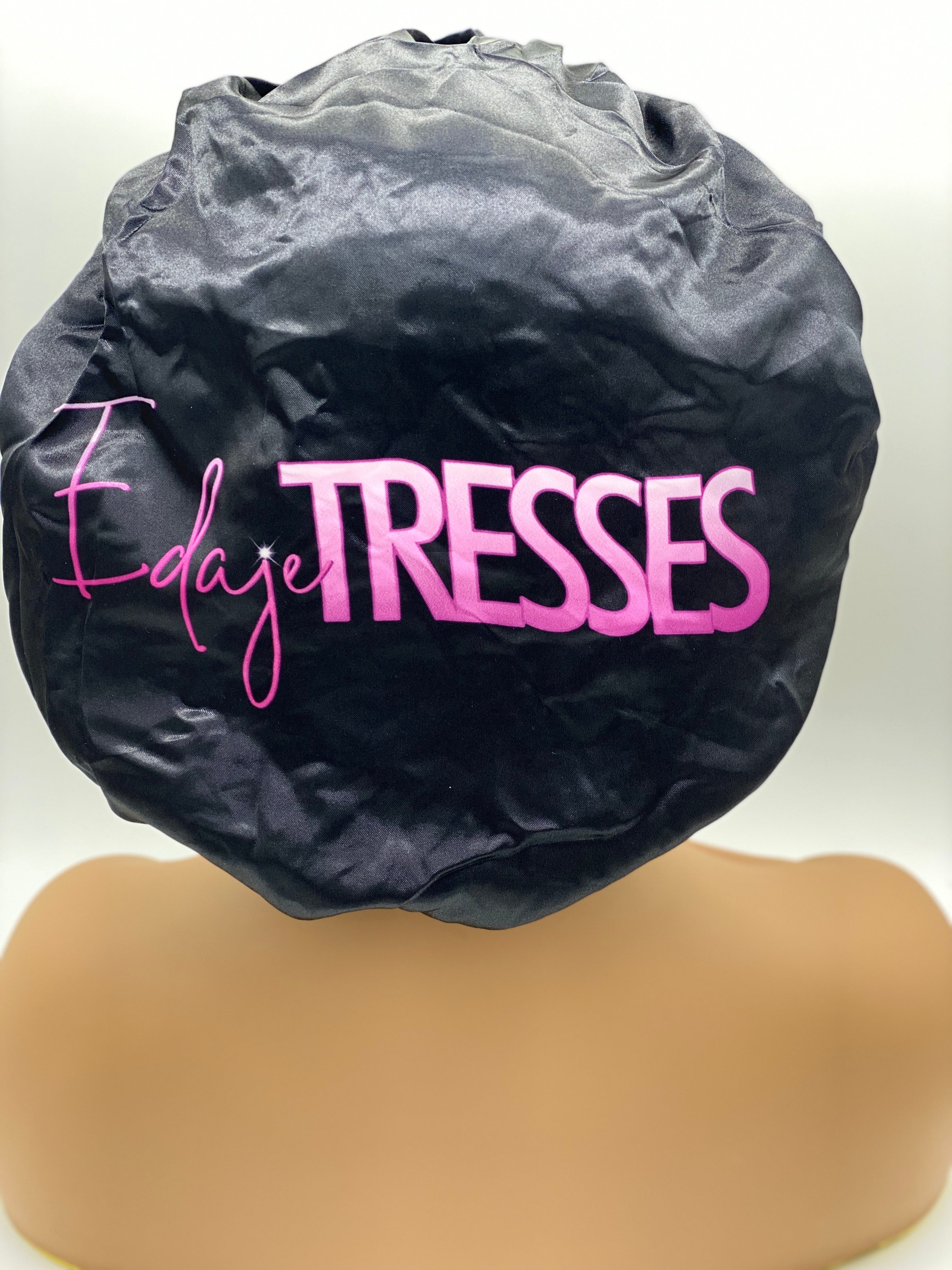 Edaje Tresses double layered mulberry silk bonnet for longevity or hair extensions and healthy.